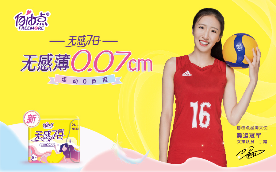 716日,自由点又有大动作,新品无感7日上市之际,官宣女排奥运冠军丁霞为全新品牌大使,用“生理期就要自由点”的态度激励女生释放真我,自由做自己,享受生理期自由,也使得自由点成为了7月营销界刷屏的C位焦点。